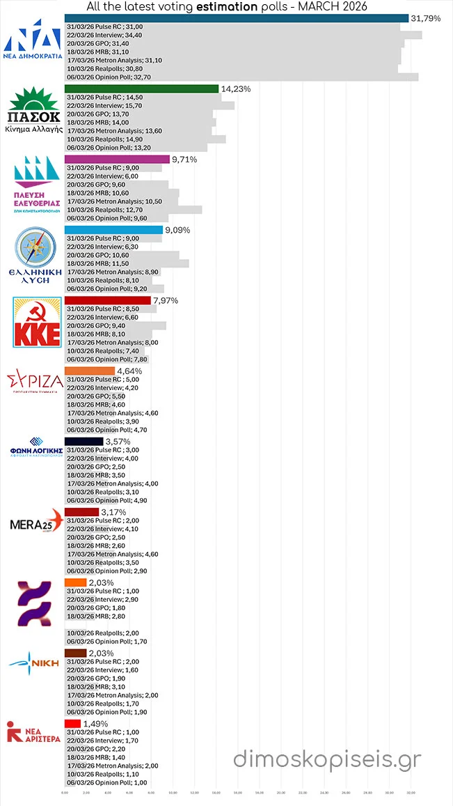 March 2026, War in Iran, PASOK Congress, tendencies of division in the New Left, courtroom for the Tempi crime and proposals for early elections.