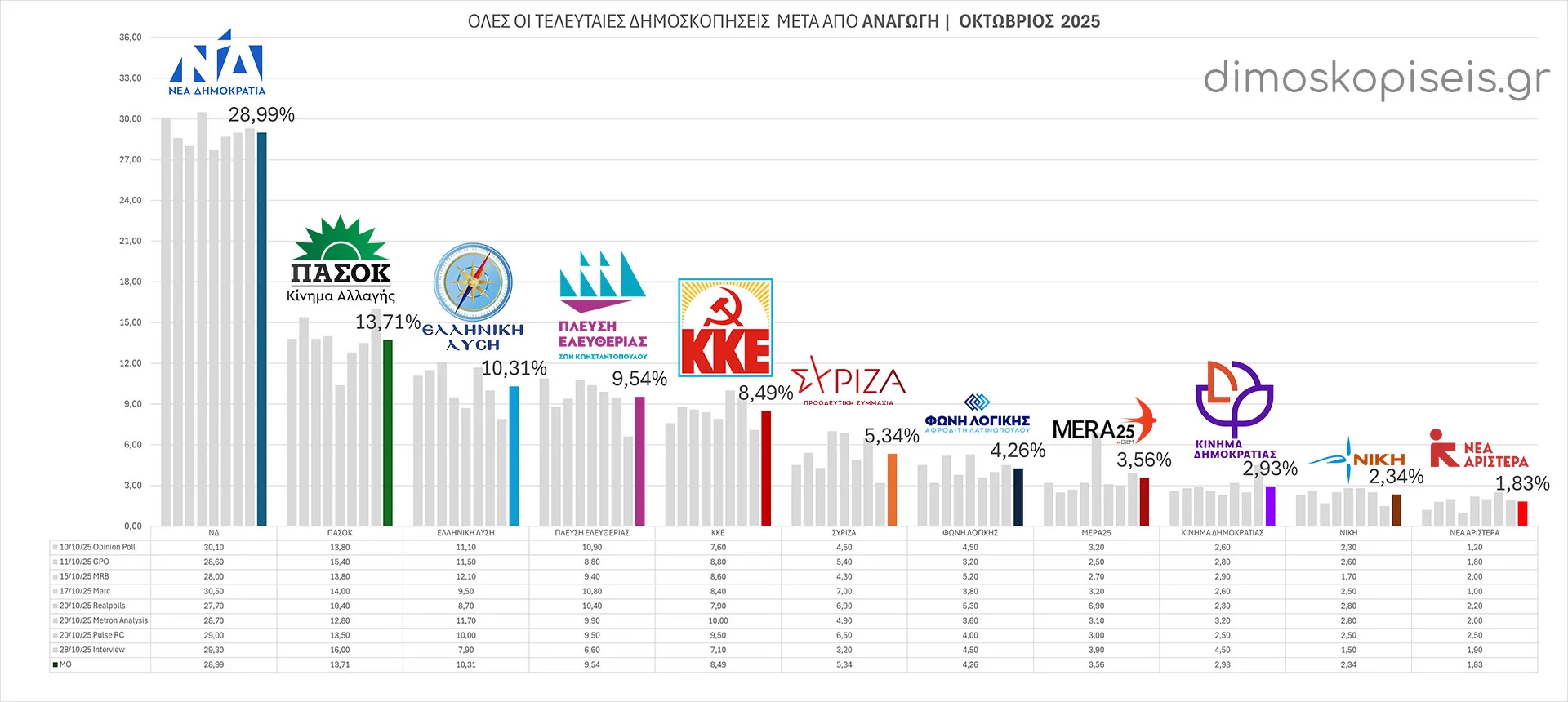 Ανάλυση όλων των δημοσκοπήσεων του Οκτωβρίου 2025