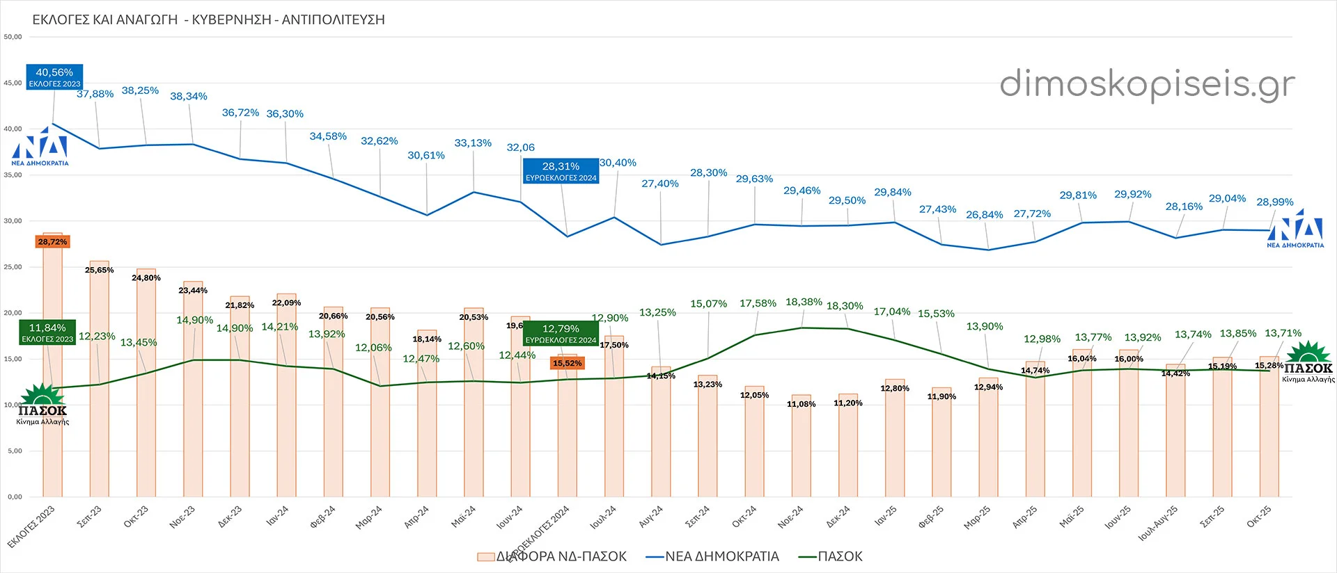 ΕΚΛΟΓΕΣ & ΔΗΜΟΣΚΟΠΗΣΕΙΣ μετά από ΑΝΑΓΩΓΗ, ΝΕΑ ΔΗΜΟΚΡΑΤΙΑ – ΠΑΣΟΚ Οκτώβριος 2025