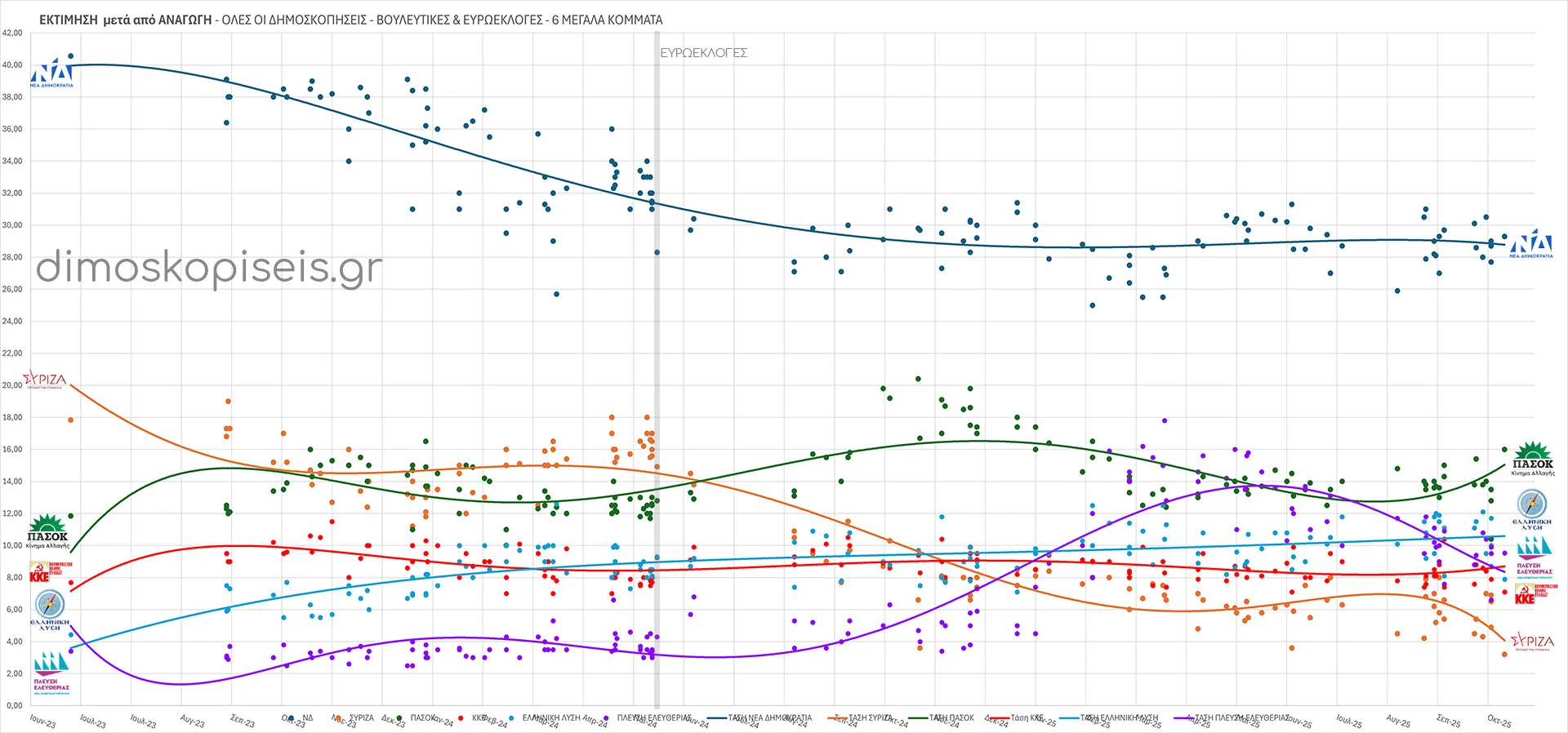 ΟΛΕΣ ΟΙ ΔΗΜΟΣΚΟΠΗΣΕΙΣ μετά από ΑΝΑΓΩΓΗ - ΒΟΥΛΕΥΤΙΚΕΣ & ΕΥΡΩΕΚΛΟΓΕΣ - 6 ΜΕΓΑΛΑ ΚΟΜΜΑΤΑ Οκτώβριος 2025