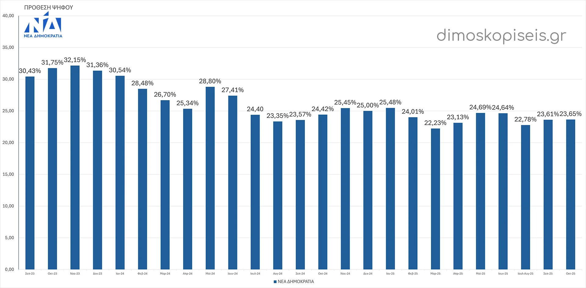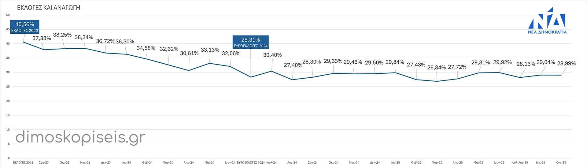 ΝΕΑ ΔΗΜΟΚΡΑΤΙΑ ΔΗΜΟΣΚΟΠΗΣΕΙΣ ΠΡΟΘΕΣΗΣ ΨΗΦΟΥ έως Οκτώβριο 2025