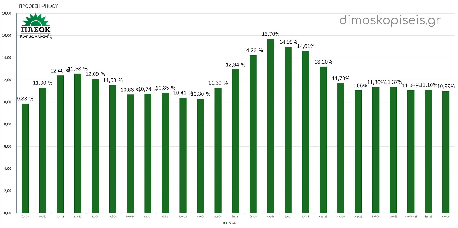 ΠΑΣΟΚ ΔΗΜΟΣΚΟΠΗΣΕΙΣ ΠΡΟΘΕΣΗΣ ΨΗΦΟΥ έως Οκτώβριο 2025