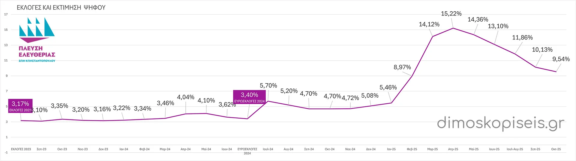 ΕΚΛΟΓΕΣ & ΔΗΜΟΣΚΟΠΗΣΕΙΣ ΠΛΕΥΣΗ ΕΛΕΥΘΕΡΙΑΣ - ΕΛΛΗΝΙΚΗ ΛΥΣΗ - ΚΚΕ -ΣΥΡΙΖΑ ΠΣ μετά από ΑΝΑΓΩΓΗ, Οκτώβριος 2025