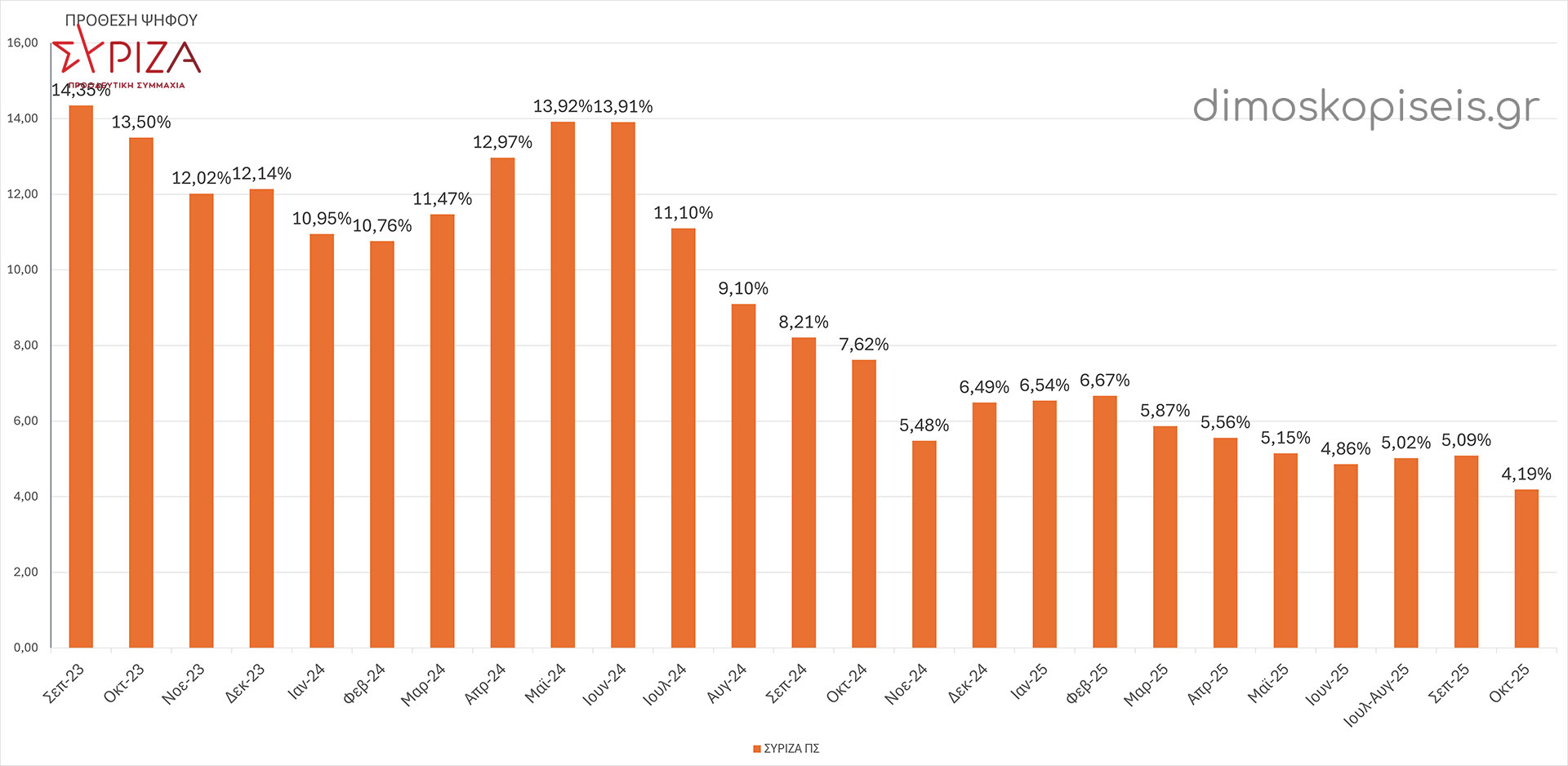 ΣΥΡΙΖΑ ΠΣ ΔΗΜΟΣΚΟΠΗΣΕΙΣ ΠΡΟΘΕΣΗΣ ΨΗΦΟΥ έως Οκτώβριο 2025